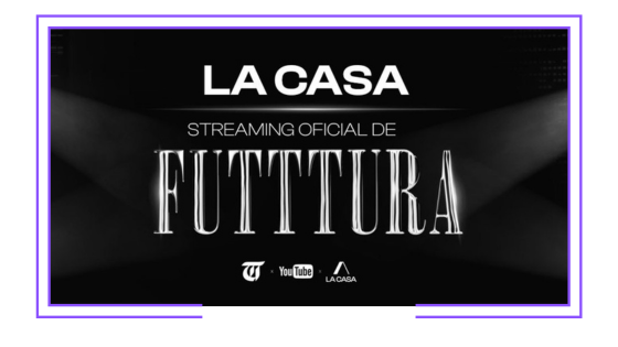 El canal argentino de streaming La Casa, disponible en YouTube, estará transmitiendo en vivo el show Futttura que hará la artista argentina Tini Stoessel en el predio Tecnópolis, ubicado en Villa Martelli, lindante a la ciudad de Buenos Aires, en Argentina. Futttura consta de ocho fechas, hasta el momento (se pueden agregar más en un futuro), pero aún no se confirmó que día será el que se exhibirá. La emisión estará disponible en forma gratuita y para todo el mundo. Así, La Casa se transformará en el primer canal de streaming en Argentina en emitir un show de música en vivo, lógicamente sin tener en cuenta los eventos musicales que las propias señales de streaming organizan.