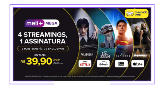 En una fuerte apuesta, la compañía de e-commerce de origen argentino Mercado Libre (Mercado Livre en Brasil) lanzó a la venta en el mercado brasileño un nuevo plan dentro de su programa de fidelidad que contempla membresías a cuatro de los principales servicios de streaming del mundo: Netflix, Disney+, HBO Max y Apple TV. Se llama Meli+ Mega y fue lanzado oficialmente la semana pasada. TAVI Latam consultó a autoridades de Mercado Libre en el Upfront de Mercado Ads en Argentina para saber si esta propuesta también será lanzada en Hispanoamérica, pero se descartó por el momento esa idea.